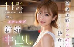是出道14周年的特别企划!天啊,时间过得好快,之前穿着工作服在工厂出道好像才是昨天的事,一下子纱仓まな(纱仓真菜)就出道14周年了ー虽然从年纪到打扮都不能算是美少女了,不过这位SOD一姐还是有很多很多「可爱」的成分,所以我们看到了这支「完全主観リアル妊活、解禁!梦のイチャラブ新婚中出し体験14発射精SP!!」: