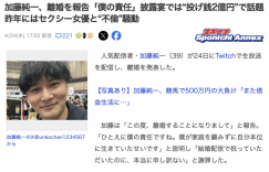 看到标题您可能想问,加藤纯一是谁?他就是之前和本郷愛 (本乡爱)爆出不伦丑闻的男主角,我简单把事情再说一遍:他,加藤纯一,是日本知名的直播主,去年9月,已婚的他被爆与本郷愛 (本乡爱)同游美国加州,在道奇球场被拍到一起为大谷翔平加油的照片,然后本郷愛(本乡爱)在社群公开道歉,自此无限期休业,X(https://x.com/ai_hongo_)再也没有更新~