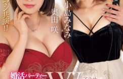 是共演!这是由小岛みなみ(小岛南)和奥田咲合作的「婚活パーティー行ったら…肉食系Wアラサー痴女に逆お持ち帰り!仆のチ●ポ夺い合い!?熟练テク挟み撃ち5连射精ハーレムの夜」,从标题就知道男主角是在相亲的时候认识了两位肉食痴女,然后一夜春宵,逆3P二女一男疯狂搞,在两人熟练的技巧下男优连射5次,蛋蛋扁掉〜