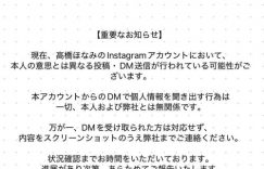 这是我第一次看到经纪公司发这样的声明!简单来翻一下意思:经纪公司LIGHT是在声明中表示,高橋ほなみ (高桥保奈美 )的IG帐号有可能会出现非本人的发文及发送私讯(DM),如果该帐号透过私讯询问个人资讯,那跟经纪公司及高桥本人完全没关係,请千万不要回应,并且立刻截图和事务所联络〜