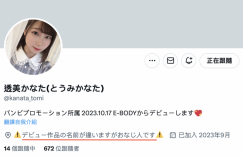 来,要请大家追踪一个女优(https://twitter.com/kanata_tomi)。她叫透美かなた(透美奏多),是经纪公司Bambi Promotion的新人女优,你可能完全没看过她的作品,因为她的作品才刚上架接受预约,但是ー