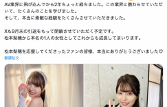 唉,比想像中更早宣布了~曾是Premium和OPPAI两家片商共同的专属女优、也在五月来参加ForAVer见面会的松本梨穂(松本梨穗)宣布了引退的决定,九月底,她就要卸下战袍、不做了~