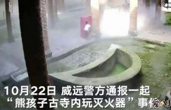 近日,有媒体报道在四川的威远静宁寺,有两个熊孩子竟然将寺内的灭火器当成是玩具一样玩耍,导致寺内的23个灭火器都被损坏了,这到底是怎么回事呢?为什么两个孩子会拿灭火器来玩,孩子的家长呢?