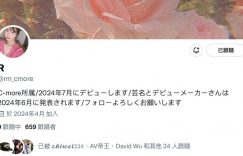 又有大型新人登场!她叫「Rちゃん(R酱)」,是经纪公司C-More最新推出的秘密武器,就X(https://twitter.com/rm_cmore)的发文来看她将会在6月的时候情报解禁⋯