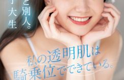 又是一台战斗机器!为什么这么说?让我们一块儿看看这位在片商kawaii*出道的新人真白さら(真白沙罗),封面很直接地说了她的三大优点:首先是极细女子大生,这意思是她瘦个像根竹竿,很适合喜欢排骨精的朋友服用,尤其是那不输伊藤舞雪的细腰应该会让人想按住她冲击小妹妹三千下;再来就是中间的透明肌,这意思是她皮肤好的不得了,已经不是超级掰的超级白,而是白到有点到半透明了,对笃信一白遮三丑的朋友这真是让人鸡动啊〜